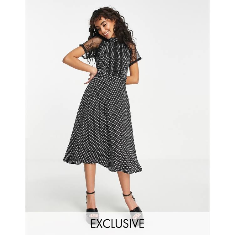 Liquorish Gepunktetes Midikleid In Schwarz Mit Spitze Und A Linien Schnitt Asos